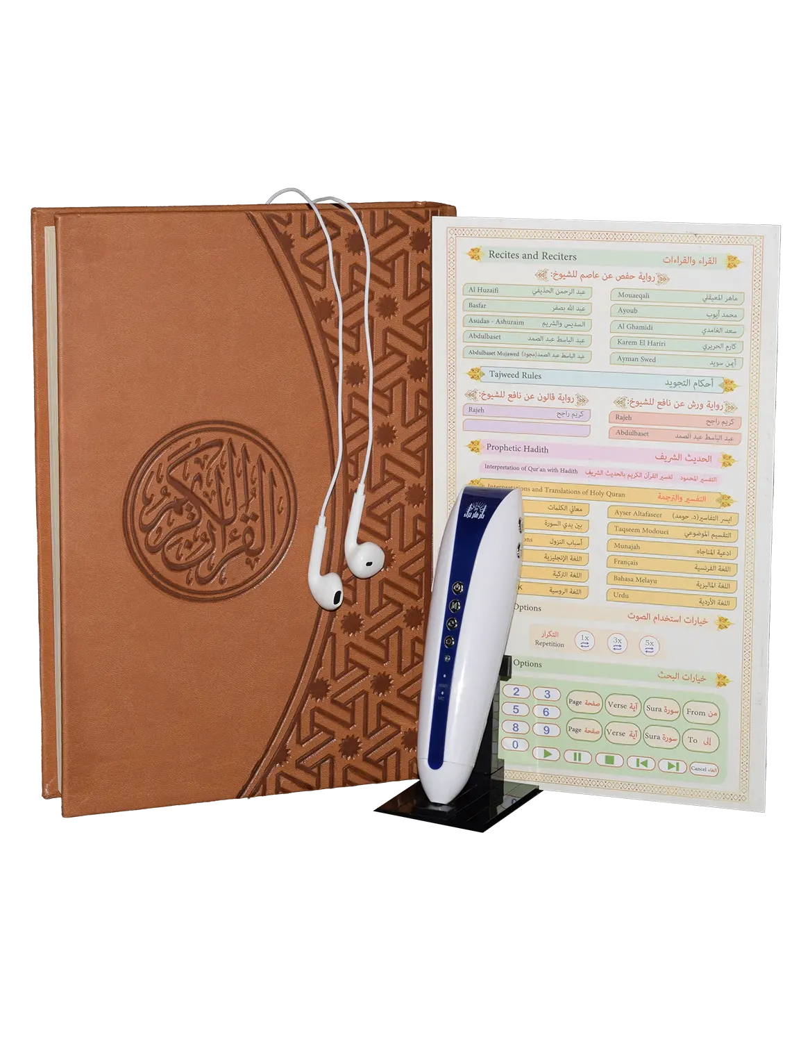 تحتوي ورقة دليل الاختيار المرفقة مع القرآن الكريم على قواعد التجويد، ويوجد فوق كل قاعدة من قواعد التجويد سهم يشير إلى وجود القاعدة، وبمجرد مرور القلم الناطق فوق السهم يتم نطق حكم التجويد